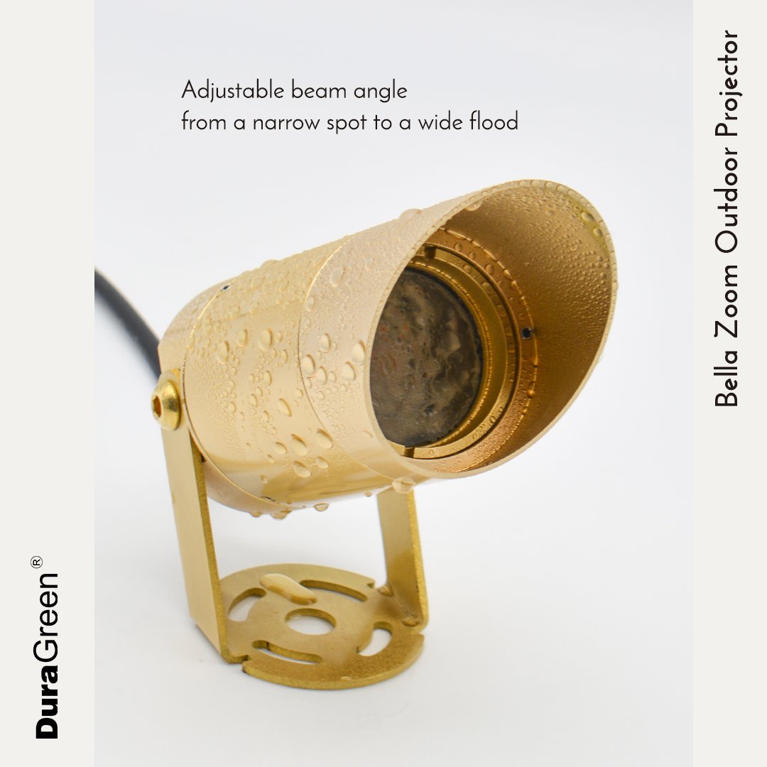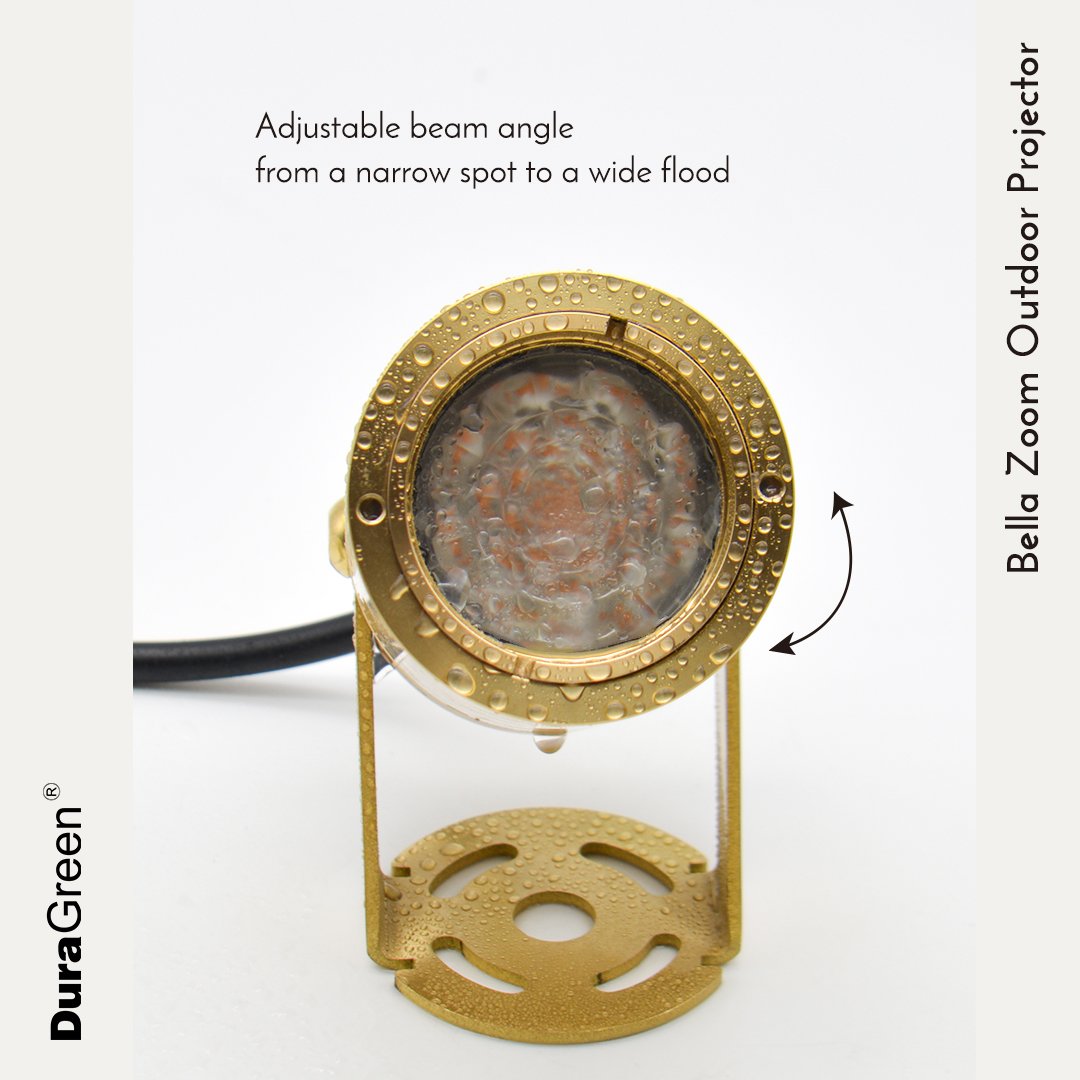 BELLA Zoom Brass Projector is a premium garden spotlight that brings warm, architectural lighting outdoors with a timeless solid brass body that naturally patinates over time. Its zoomable 15°–50° beam lets you fine‑tune the light from a tight highlight to a broad wash simply by rotating the front ring with the tool supplied, so you can adapt as trees and planting grow and change. With multiple control options available, BELLA Zoom Brass Projector is ideal for designers seeking refined, flexible and enduring exterior accent lighting.
