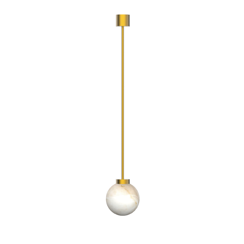 CELESTIA Alabaster Ball Pendant embodies refined luxury for contemporary interiors. Each piece is carved from natural alabaster, producing a uniquely patterned, softly diffused glow with inherent warmth and sophistication.